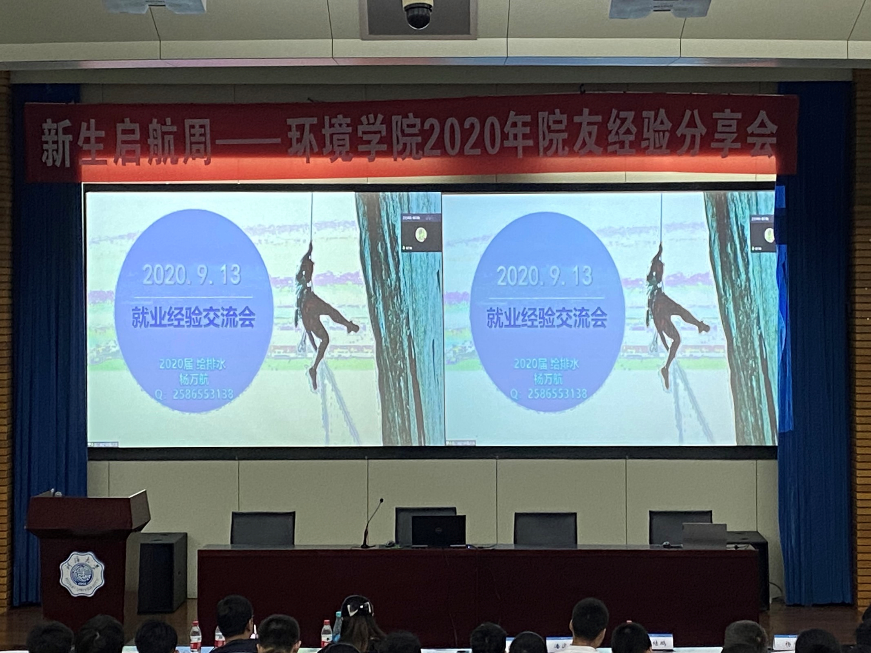 9月13日下午2:00,51吃瓜网 梦想公开课——2020届校友成长经验交流分享会在江宁会议中心成功举办。20级辅导员及全体新生参加本次活动。活动共邀请了8位环境院20届优秀毕业生,面向20级新生以线上线下两种形式分享了自己的成长经历,他们或取得保研资格,或成功考研,或出国出境深造,或参加工作。本次活动由计思怡同学主持,旨在借优秀院友们的成长经历使同学们加深对大学生涯的了解,在本科阶段树立明确的目标。