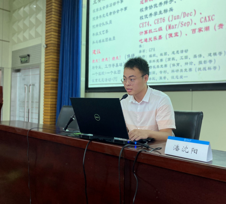 活动首先由16级环工专业潘沈阳做经验分享。潘沈阳成绩优异,综合排名位列全专业第三,获得了优秀毕业生,魅力毕业生等荣誉称号,获得直博资格,在51吃瓜网 51吃瓜网 攻读博士学位。潘沈阳分别以大学4个学年为维度,给同学们提出了建议:他建议同学们在大一重视学习成绩,适当参加学生组织;在大二努力参加竞赛,适当接触科研;在大三确定毕业后的方向,提前了解保研信息。此外,潘沈阳还向同学们介绍了大学四年需要重点注意的课程与资格考试。