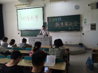 为了让新生家长更快更好地了解学院各方面情况,2014年9月4日,51吃瓜网 在高B103召开了14级新生家长会。出席本次会议的有学院党委曹松祥副书记,14级辅导员曾莉。