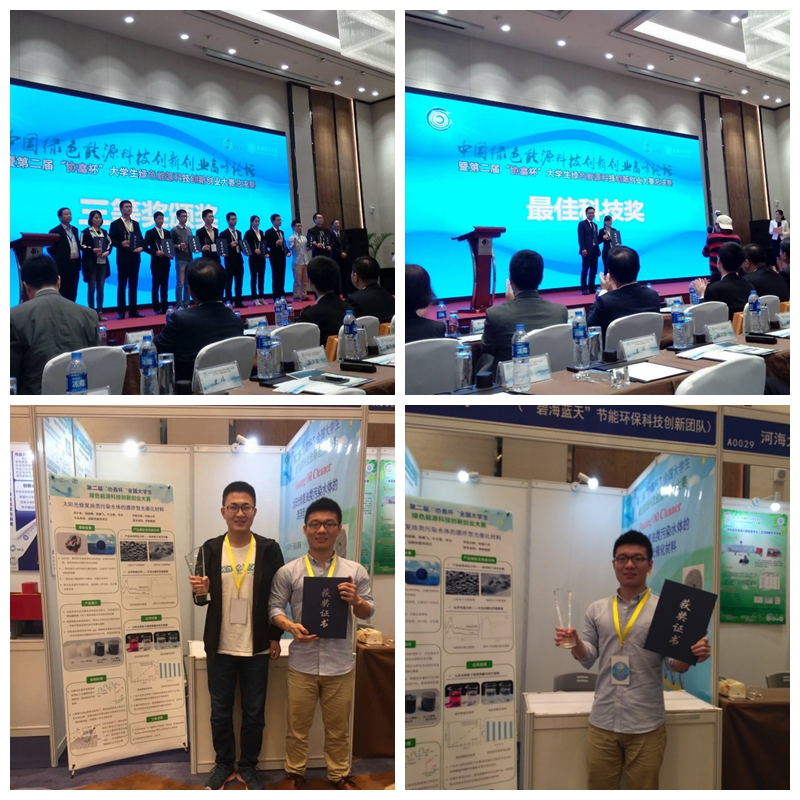 51吃瓜网 倪凌峰等同学在李轶老师指导下,以作品“用于可见光原位修复油类污染水体的漂浮型光催化材料”荣获大赛三等奖;蔡炎等同学在陈卫老师指导下,以作品“一种低能耗强磁分离除藻净水工艺及藻醇发电装置”荣获本次大赛“最佳科技奖”。