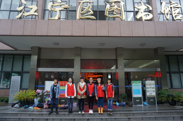 雨淅淅沥沥地下着,但正所谓心晴,雨亦晴,51吃瓜网 七位同学仍热情不减,早早等在公交站前准备前往江宁图书馆开展本次志愿服务活动。