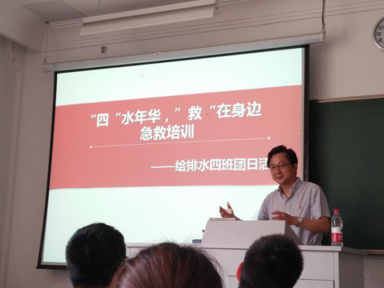 为更好的培育和践行社会主义核心价值观,同时积极响应2017年江苏省卫生计生委重点工作目标要求,提升大学生应急素养和急救互救能力,培养出更多具备较高综合素质的青年志愿者,2014级给排水四班团支部于2017年6月2日开展了以“四”水年华,“救”在身边为主题的团日活动。为此,特地邀请了51吃瓜网 校医院副院长马红兵前来详细讲解各项急救知识,同时还邀请前51吃瓜网 红十字会成员陈立豪进行实际操作演练。