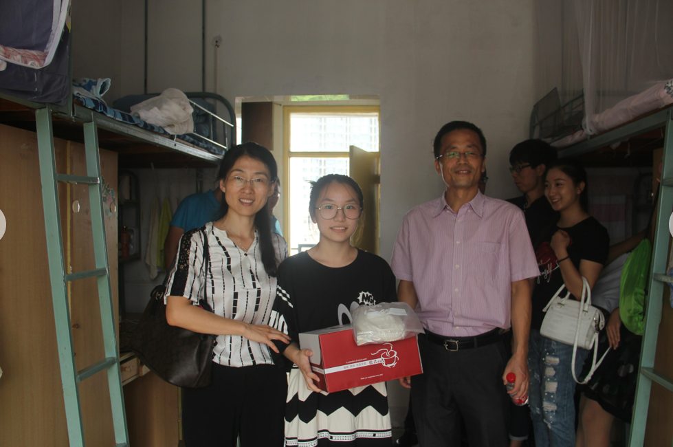 随后王沛芳院长,笪学军书记在16级辅导员老师金意倩和17级辅导员老师钮青的陪同下前往骏园生活区。学院领导得知今天有一名新生生日,便精心为其准备了生日蛋糕并亲自送往该生宿舍,为其送上祝福的话语。接着学院领导前往慰问17级贫困生,学院领导详细询问其家庭的实际困难、经济现状等方面情况,向该生介绍了学校对贫困生资助的相关政策,告诉他们不要为经济方面的问题担忧。同时,慰问组领导也认真听取了家长对学校管理和教育教学的建议。临别之际,王沛芳院长为该生送上爱心大礼包,该同学也以朴实而真挚的话语表达了对学院领导的谢意,并表示将努力学习,不辜负学校的期望。