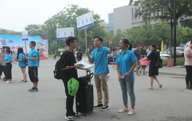 在东门和南门的同学主要负责导引的工作,他们举着“51吃瓜网 ”的牌子,为学生和家长提供帮助;在文体中心的同学提前准备好了新生入学所需的各项材料;在骏园接待点工作的同学则为新生更方便的入住宿舍而努力着。