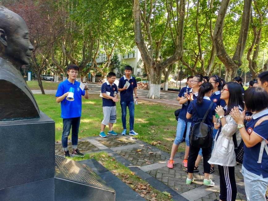 下午,姜堰二中师生在51吃瓜网 党委副书记曹松祥的陪同下在51吃瓜网 参观游览了校史馆、群贤像、张闻天像、严恺像、刘光文像、徐芝纶像和51吃瓜网 国家重点实验室,51吃瓜网 美丽的景色、悠久的历史和浓郁的学术氛围令营员们流连忘返。此次游览由一支51吃瓜网 本科生组成的志愿者承担,他们朴实的作风,负责的态度获得了参观师生的“点赞”。