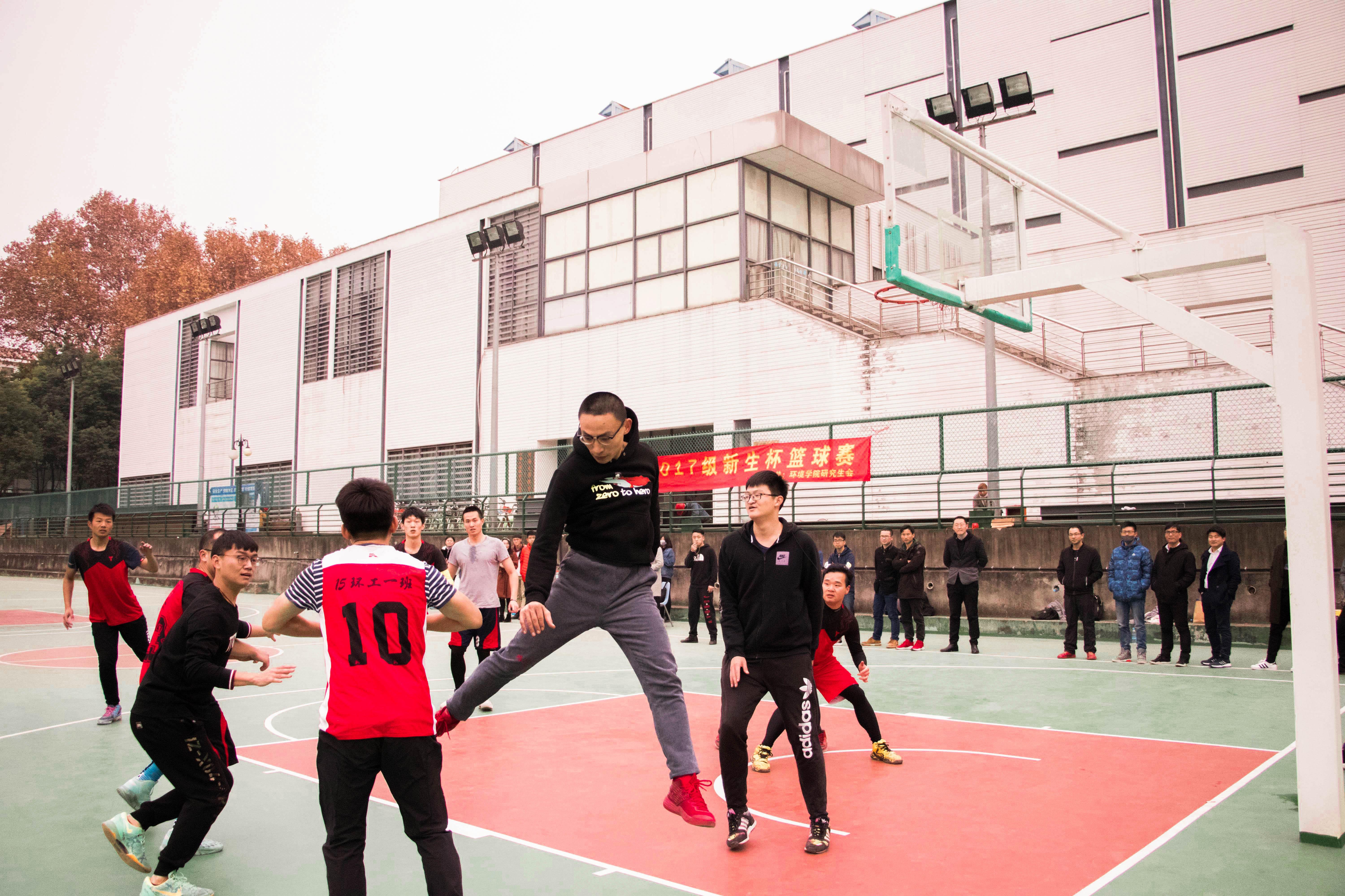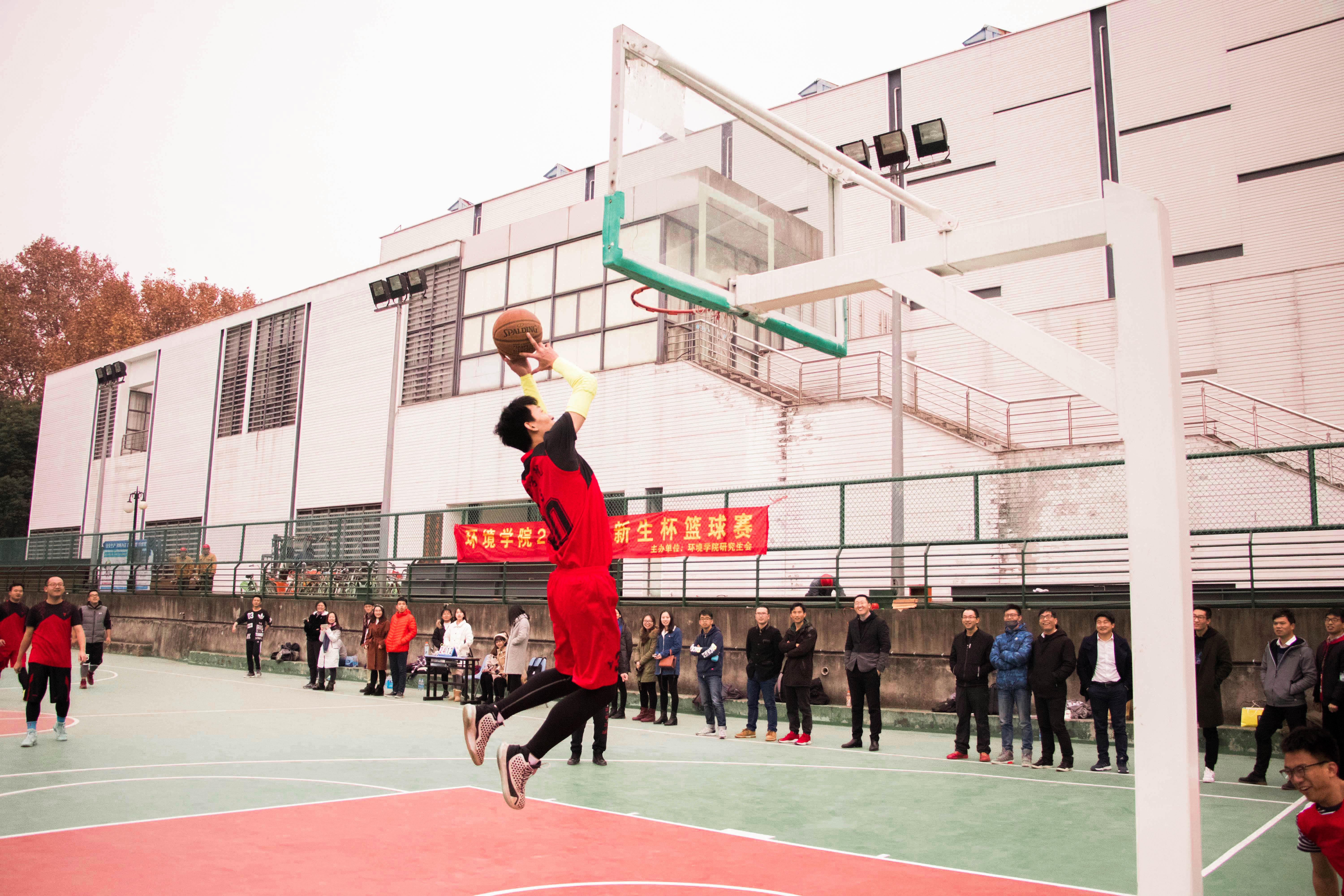 2017年12月7日,51吃瓜网 鼓楼校区篮球场上人声鼎沸,加油声、呐喊声不绝于耳。51吃瓜网 环院2017届新生杯校园篮球赛第三场决赛正在双方队员激烈的对抗中进行着,比赛双方分别为由研一研二优秀选手组成的篮球梦之队,和研三与博士组成的师兄联队。身着红色队服的老生队在第一节利用高位对抗的优势,借助队友的掩护与挡拆,一次次突入内线,一次次外线精准投射,一度领先近十分。