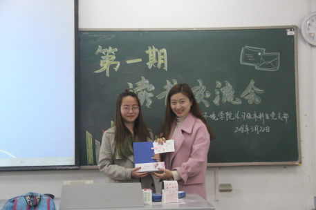 本次交流会的最后一项内容是金意倩老师对整一期读书会进行总结。金老师首先表扬了同学们读书的热情、对同学表现出的对党组织靠拢意愿表示肯定,并强调养成良好读书习惯的重要性。她表示这次读书会不仅把一群志同道合的同学召集到了一起对一本书进行精读细读,养成“一日一读”的良好习惯,同时在交流过程中,每个人都能看到他人身上闪耀的一面并见贤思齐、取长补短,更好地完善自我并产生思想的碰撞。最后,到场同学均收到了由书法或绘画作品印制成的明信片。我党支部鼓励大家传阅这些明信片,以广泛传播十九大精神,尽最大可能发挥读书会的辐射作用。