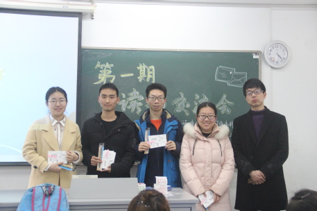 随后,由金意倩老师和钮青老师为本期读书会的一二三等奖发放了由获奖作品制成的明信片和其他小礼品。获奖同学也与大家分享了书法或绘画作品创作中的想法和困惑。接着,在场同学自由发言,为大家推荐自己阅读过的优秀书籍,《基督山伯爵》、《来自新世界》、《天才在左疯子在右》等不同题材不同类型的好书都相继被到场同学纳入书单。