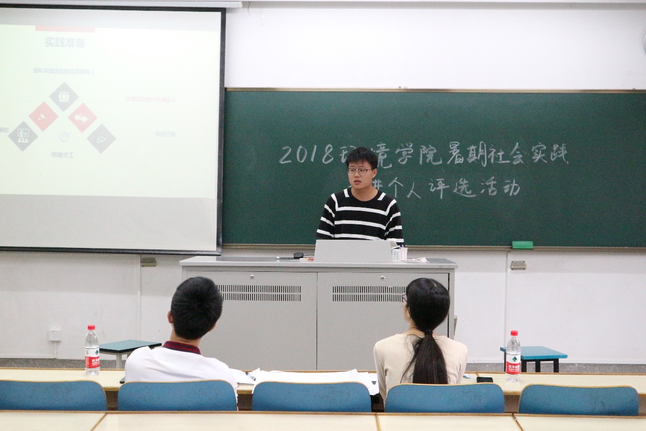 在评选活动的一个多小时期间,候选人们从实践背景、实践过程和个人感想等方面,对自己的实践成果进行了总结和展示,向大家分享了自己的收获与成长。评委老师们也都细心聆听并且为他们打分。