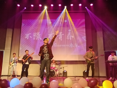 接下来是学长学姐们带来的节目——《老腊肉的告白》。这是一首合唱串烧歌曲。以歌曲《浴火成诗》开场,接着是《手心的蔷薇》,最后收场是《告白气球》。学长学姐们成双出场,深情对唱。说唱部分带动全场气氛,同学们沉浸在节目之中,纷纷挥动手中的荧光棒,尖叫惊呼不绝于耳。