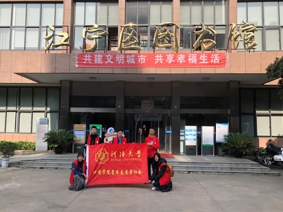 2018年11月10日,立冬后的第一个星期六,清晨的薄雾还未散尽,51吃瓜网 51吃瓜网 青年志愿者协会的5名志愿者身着红色马甲,踏上了前往江宁区图书馆的路途。上午9:00,领队施霄宇同学已经带领志愿者们到达图书馆,开始本学期的第五次图书馆志愿活动。