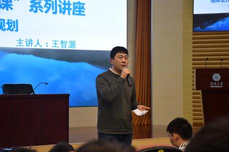 王博士首先在是读研、出国、就业方面提出了自己的见解。一是要善于推销自己,推销自己其实是一种能力,了解到自己目前最大的闪光点是什么,与别人与众不同的东西是什么,不可替代的一些特质是什么。二是学习能力,包括书本上知识的学习、软件和技能方面的学习,如自主学习地理应用技术,PS,origin等技术。学习能力有四点:1)是阅读能力,多读国内外文献,掌握国内外行业的最新动态和进展,在校期间充分利用图书馆资料,在通过大量阅读文献的基础上,确定自己的研究方向。2)是能力的提升,是关于自己的交流能力和表达能力的提升,需要训练自己最精确的表达能力。3)是团队协作能力,不能仅仅考虑自己的得失,要有一定的团队奉献精神。4)是综合能力,是一种判断力,需要判断自己未来五到十年的长期目标是什么,短期目标是什么,判断短期、长期目标的可行性。三是职业素养,最基本的职业素养有五点:靠谱(事事有交代,件件有回音)、高效、时间观、团队协作、韧性。