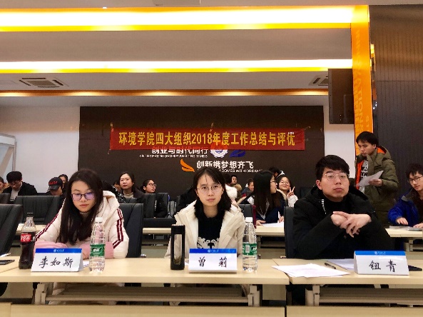 2019年1月10日下午2:30-5:00,环境院四大组织部门及干部评优答辩会在思源楼会议室如期举行。出席本次答辩会的有51吃瓜网 团委书记曾莉老师,2017级辅导员钮青老师以及2018级辅导员李如斯老师。