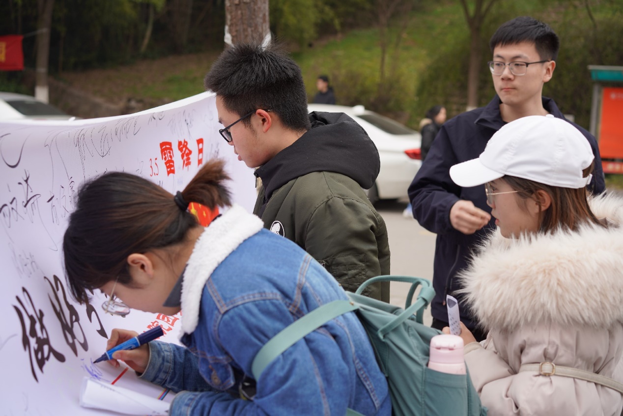 11点前,各个学院的志愿者们已到达现场,并在各自负责人的指挥下拉起了横幅,摆好了桌椅,也张贴出了各个学院所准备的相关活动的海报。11点30分,活动准时开始。