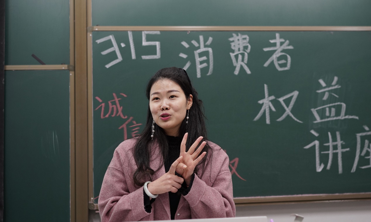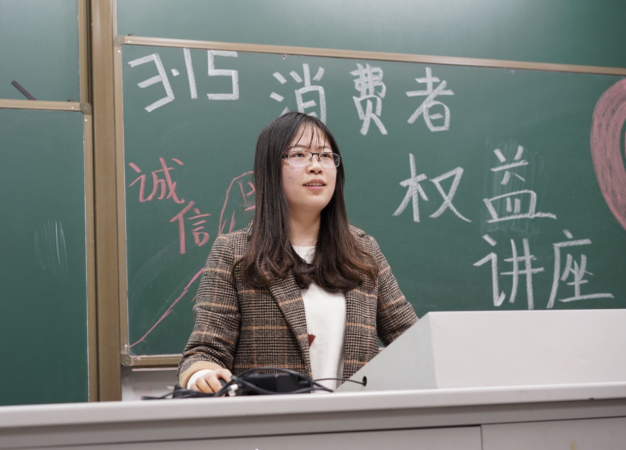 正值3.15消费者权益日,讲座现场座无虚席。身处中国这个消费大国,同学们对消费者所享有权益缺少全面的了解,对消费者如何最大化地保障自身权益缺乏系统化的知识普及。本次讲座目的在于向同学们普及消费者九大权益的内涵,介绍基本的维权渠道与方式。6时30分,讲座准时开始。首先,由陆美娜同学向我们介绍消费者权益保护的意义和相关的法律法规,并强调了保护消费者权益的重要性,让同学们对消费者权益有了基本的理解。
