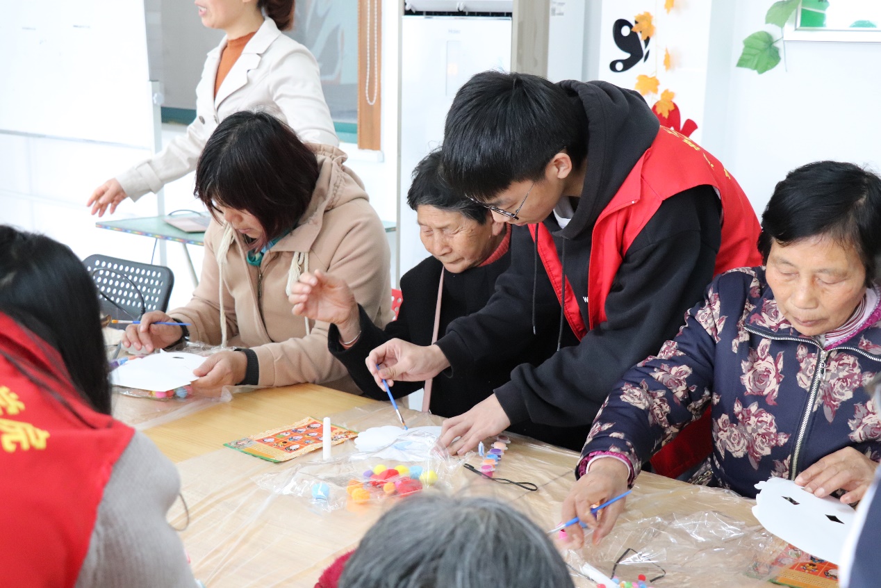 刚开始制作脸谱时,老人们和志愿者都略显生疏,在短暂的理解和尝试后,大家才熟悉了操作方法。一些操作不便的老人不能独立制作脸谱,在志愿者耐心热情地帮助下,一步步完成了脸谱的制作。在制作过程中,志愿者们和老人亲切地交谈,关系从陌生到融洽,一位奶奶兴致大发,还唱起了《说唱脸谱》,活动场面十分热闹。