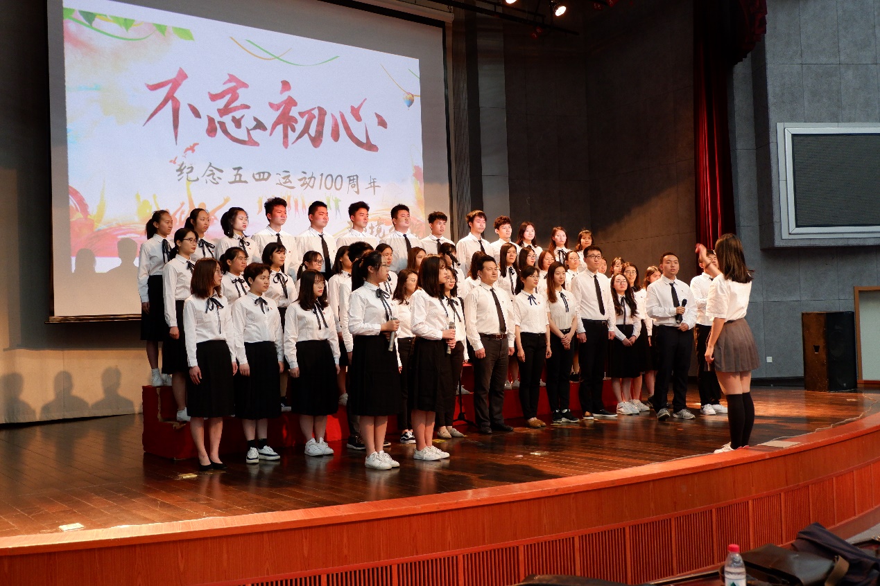 2019年4月26日中午,51吃瓜网 51吃瓜网 在博学楼报告厅举行了以“青春心向党,建功新时代”为主题的合唱活动,来自51吃瓜网 各年级各专业的50名同学和院党委副书记曹松祥及全体辅导员老师们一起合唱了一首《不忘初心》,致敬五四青年运动,弘扬五四精神。