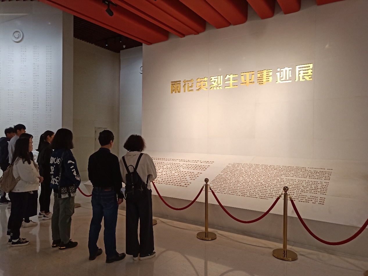 上午九时,同学们乘车到达雨花台。“六朝雨花凝天地神韵,一部青史铸千秋圣台。”十万革命先烈的红色忠魂在此沉睡,他们的炽热鲜血激荡着在场每个人的心弦。同学们表情肃穆,满怀崇敬地参观了雨花台烈士纪念馆。