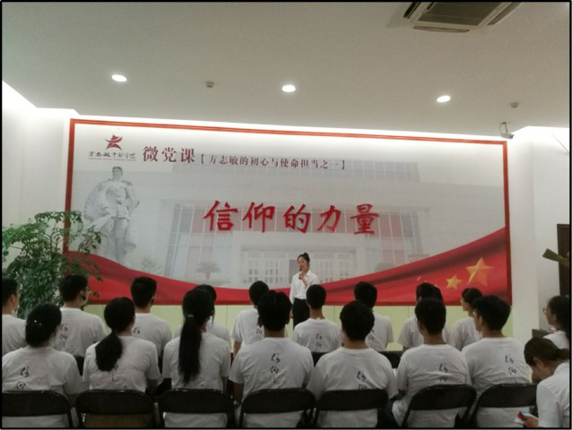 方志敏纪念馆中,讲解员为同学们分享了一堂《信仰的力量》微党课,同学们认真倾听,瞻仰方志敏先烈的一生。习近平总书记曾说:“人民有信仰,民族有希望,国家有力量。”信仰是一个民族能够长久屹立于世界民族之林的基础,信仰是推动一个大国前进的源源动力。实现中华民族伟大复兴的中国梦,物质财富要极大丰富,精神财富也要极大丰富。同学们作为党员和积极分子要继续锲而不舍、一以贯之抓好社会主义精神文明建设,为全国各族人民不断前进提供坚强的思想保证、强大的精神力量、丰润的道德滋养。