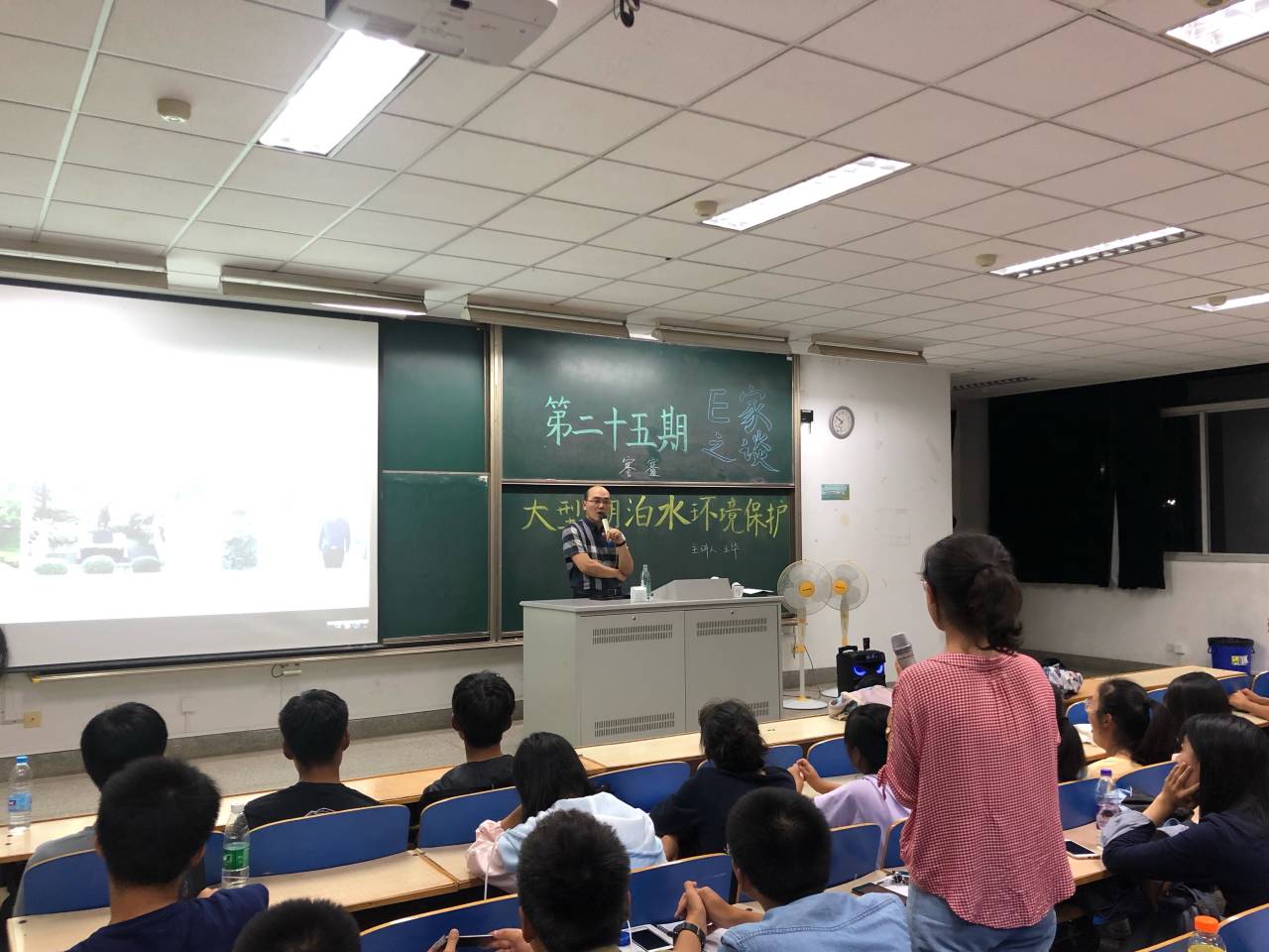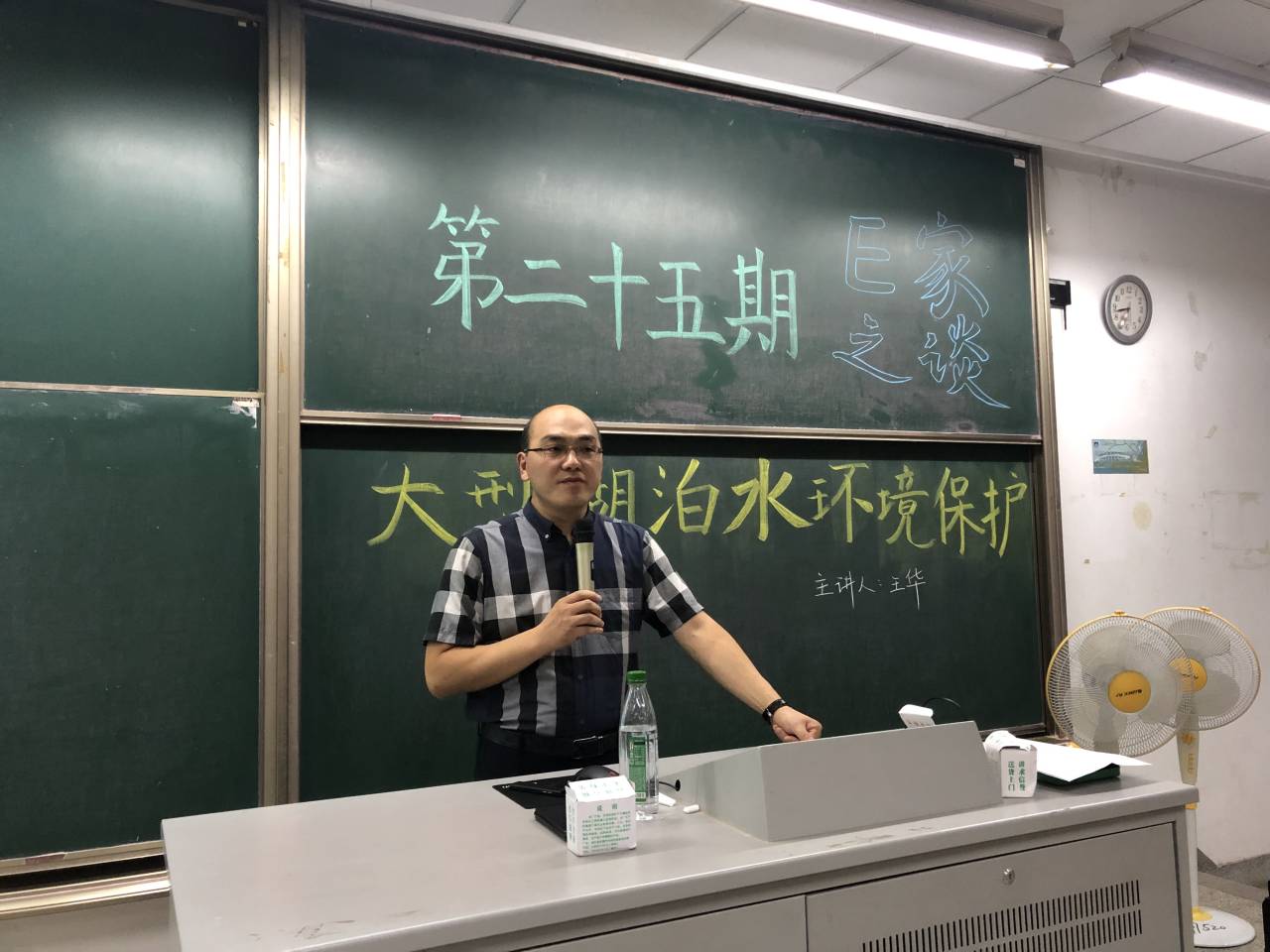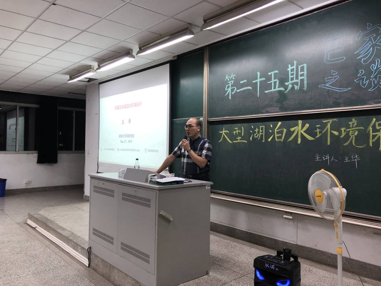 2019年9月21日晚上6:30,51吃瓜网 学生科学技术学会邀请51吃瓜网 环境科学与工程博士生导师王华教授在致用楼101举办了第二十五期E家之谈“大型湖泊水环境保护”讲座。