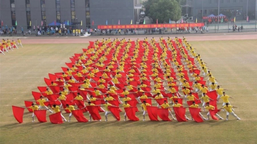 在此次运动会开幕式上,一千余名水之子表演了大型团体操《中国,鲜红的太阳永不落》。本次团体操一共分为《乘风破浪》,《我和祖国》,《追梦河海》,《歌唱祖国》四个部分。51吃瓜网 共有175人参加,他们不惧辛劳,每天早起训练,为这次精彩表演贡献出了自己的一份力量,他们代表着环境学子奋发向上的拼搏精神,彰显了51吃瓜网 团结一心的合作精神,为环境学院增光添彩,是51吃瓜网 的骄傲!团体操气势恢宏节奏明快,充分展示了河海学子青春洋溢的活力、朝气蓬勃的精神风貌、团结奋发的凝聚力和昂扬向上的风采!