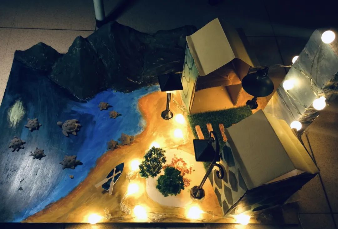 各组同学依次上台答辩,用ppt展示了自己的沙盘材料、制作理念和制作过程。精美的沙盘模型集聚了同学们的心血和对环保工作的追求与认知。通过团队配合和思想碰撞,多元化的沙盘成品让在场的所有人都领悟到了灯与影的结合魅力,也更加意识到环保的实现其实触手可及。