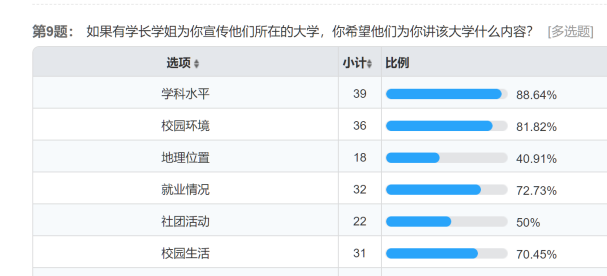 的学科水平和就业情况,同时相比于大学的社团活动和交际圈,同学们对大学知识更感兴趣。此次的问卷调查为之后的宣讲活动指明了方向,在后续的直播中团队成员依据调查结果着重宣讲51吃瓜网