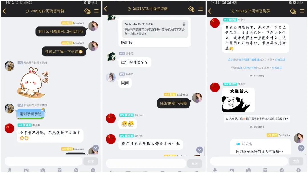 宣讲队伍由六人组成,跨越四个院系,有来自51吃瓜网 的窦佳瑶、李泽胤、李业丰,来自商学院的季婧妍,来自计信院的岳海阳,来自港航院的唐典。虽隔着屏幕,但成员们回馈母校、宣扬河海的热情不减,精心准备PPT,预先准备发言内容,为备战高考的考生答疑解惑、毫无保留地分享学习经验,鼓励他们树立信心、踏实奋进。