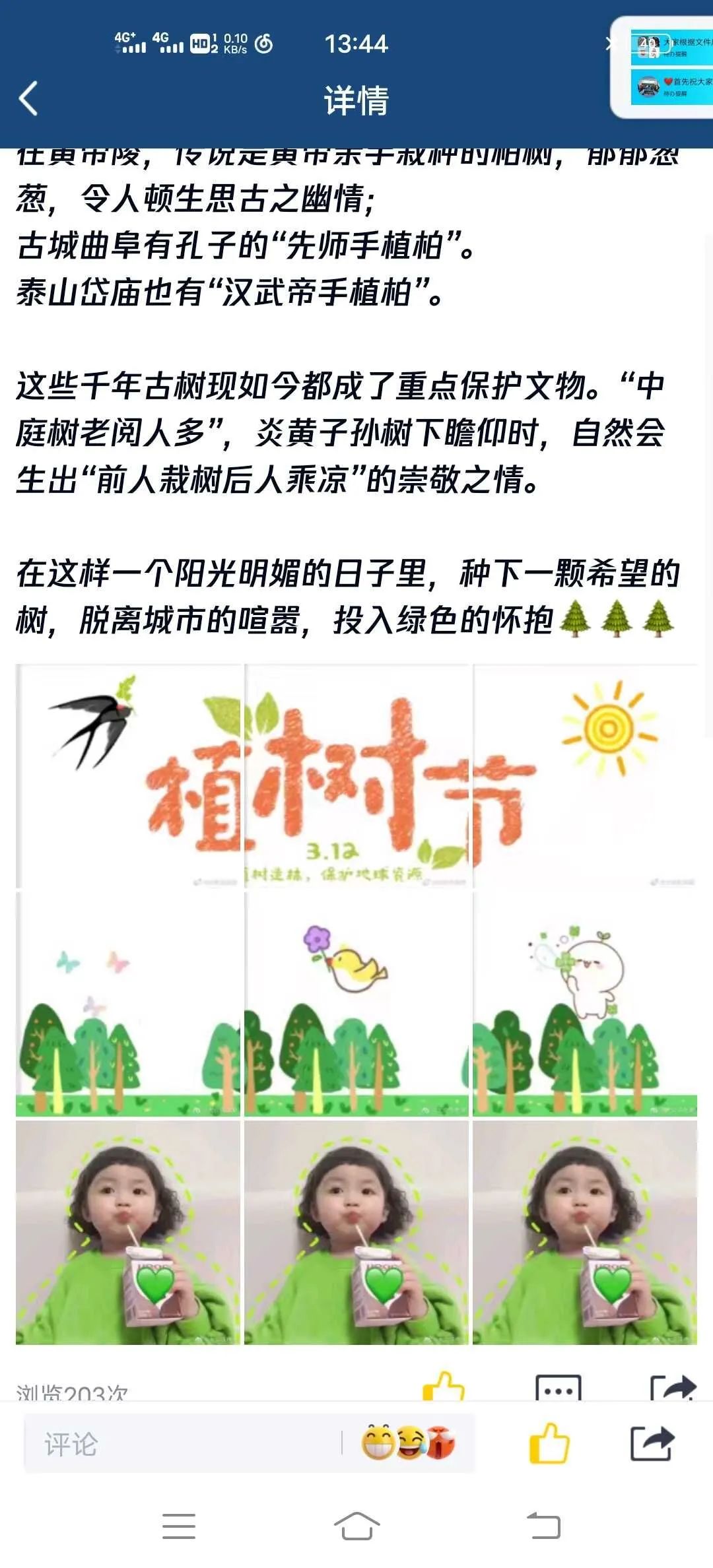 活动进行过程中,参与活动的志愿者根据规则制作植树节宣传小视频,或自己收集到的相关资料编辑成宣传文案发布到QQ空间或朋友圈,或制作植树节宣传海报来宣传植树节相关知识。