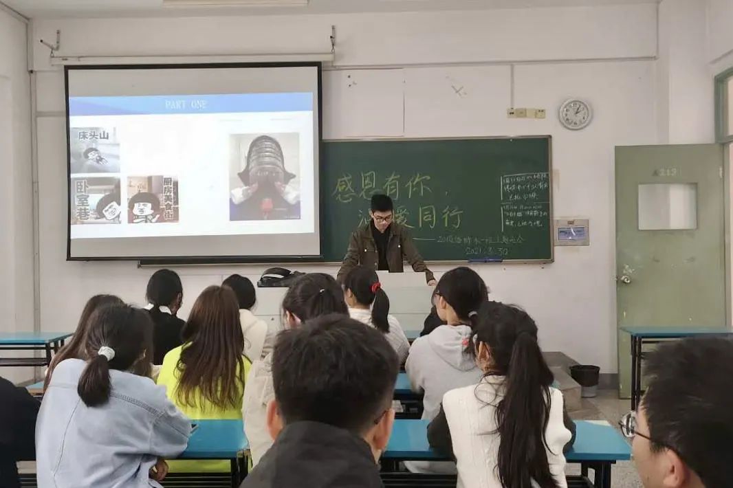 心理委员管宇扬组织同学们开展班会,明确班会主旨。班会内容包括:分享自己成长中感人肺腑的故事,让同学说出内心的话,打破隔阂认知自我;开展一些小游戏,与同学之间互相介绍对方,说出对方令你刮目相看的点。班会最后,让更多同学有提出建议的机会,总结班会,让同学发表意见以便改进。