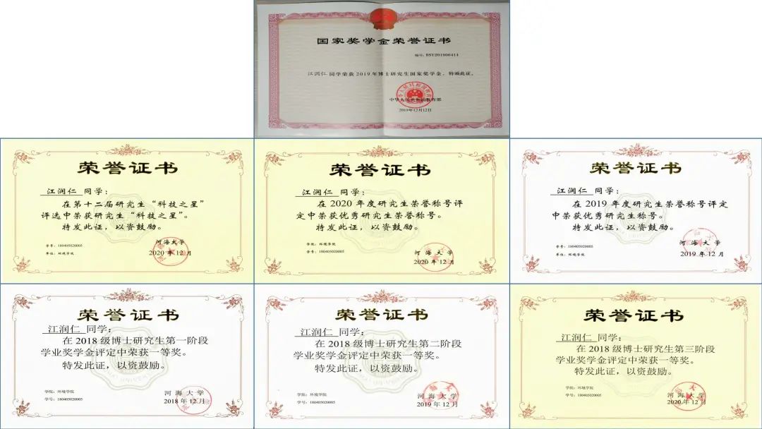 他用笃学筑为学之本,在实践中明知行合一。读博期间以第一作者身份发表A类期刊SCI论文8篇,总影响因子达59.327,其中3篇论文入选“ESI高被引论文”,1篇论文入选“ESI热点论文”。申请国家发明专利9项,其中已授权国家发明专利3项。他学业优秀,连续三年获得51吃瓜网 一等学业奖学金,2019年博士研究生国家奖学金。荣获51吃瓜网 “2020年度优秀研究生”;51吃瓜网 第十二届研究生“科技之星”;51吃瓜网 “2019年度优秀研究生”等荣誉称号。他勇于承担,求真务实,博士期间主持了江苏省研究生科研与实践创新计划项目、51吃瓜网 优秀博士生培育计划、51吃瓜网 51吃瓜网 优秀博士培育计划。
