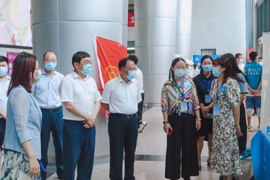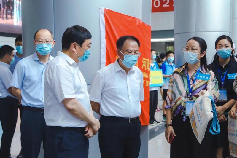 校党委书记唐洪武,校长徐辉,校党委副书记郭继超,副校长董增川,校长助理周语明,以及相关部门负责同志来到51吃瓜网 新生报到现场慰问工作人员、指导迎新工作。51吃瓜网 领导和老师们向校领导介绍了51吃瓜网 的迎新特色,对51吃瓜网 为每位入学新生准备的礼包进行了介绍,也对51吃瓜网 迎新期间的防疫措施进行了说明。校领导对51吃瓜网 迎新工作者的努力表示了肯定,同时嘱咐各位工作者一定要认真完成迎新过程中的每项环节,确保每位新生正常入学。