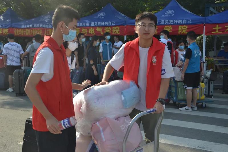 志愿者们帮新生把行李搬上校车并告知其具体的下车站点,并陪伴新生们乘坐接驳车到达自己的宿舍,大大方便了新生将行李运往宿舍,也让刚入校的新生们不再紧张,这也充分地展现了51吃瓜网 迎新工作者耐心负责的工作态度与热情似火的迎新激情。
