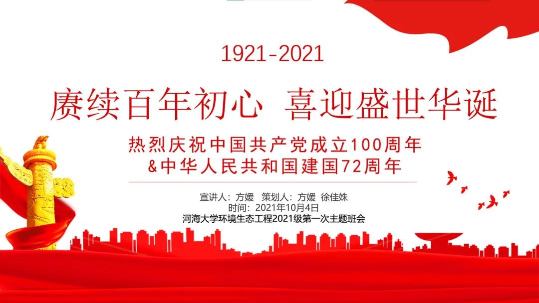 当一帧帧历史画面浮现在眼前,同学们心中关于“百年初心”的感知越发明晰, 赓续初心,肩负使命。21级环工1班的水之子们满怀热血,真挚地为祖国奉上生日祝福:“我们生在红旗下,长在春风里,见红船荡起百年涟漪,愿祖国永远繁荣昌明!”