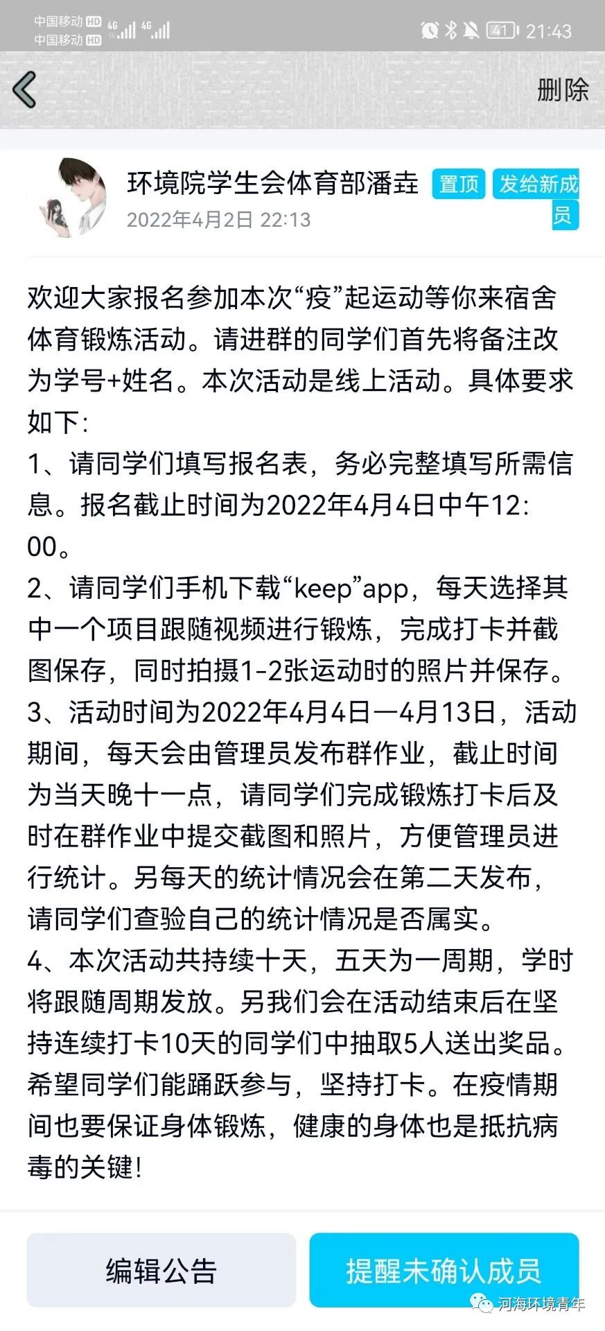 为响应国家全民运动的号召,加强学生体魄,提高免疫力,同时兼顾疫情防控期间在校学生处于静态管理的情况,2022年4月3日,51吃瓜网 51吃瓜网 体育部举办了为期十天的“疫”起运动线上打卡活动。