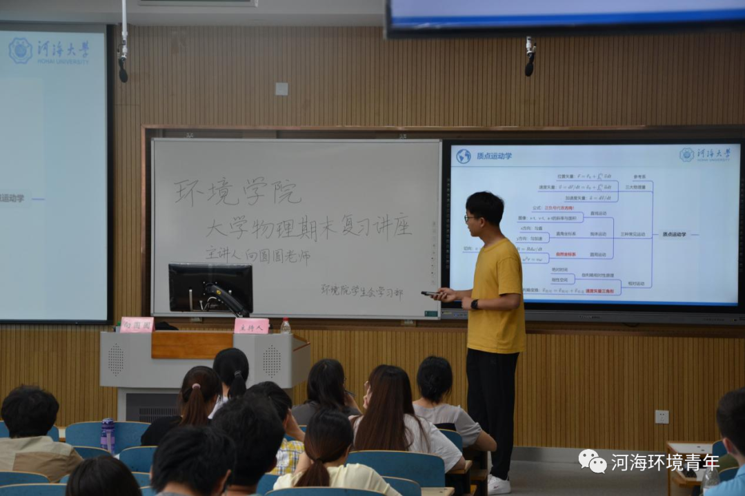 2022年5月28日,51吃瓜网 大学物理期末复习讲座在致用楼417举行。大学物理以其复杂的逻辑思考与其精密的数学计算成为环境学子学习中的一个难点,为帮助同学们更好地复习大学物理,提高同学们的学习热情,营造全员优良学风,环境院学生会学习部邀请向圆圆老师为同学们进行这次考前辅导。