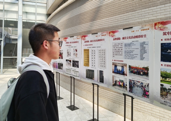 本次展览同时展出了学校近年来在廉洁文化建设方面的工作布局与成果,分别从强基固本、启智润心、筑牢阵地、品牌创建四个方面,以图文并茂的形式向同学们展现了学校各部在此方面的积极建设。从开展专题学习,建设有力制度,到开辟多元廉洁文化载体;自举办知识、朗诵比赛,至组织电子公益海报、书法漫画竞赛等不同形式的学生廉洁文化活动,51吃瓜网 在宣扬廉洁文化方面从未停止过前进的步伐。那些油印在展览版上的图文,也同样将廉洁文化印刻在每一位河海学子的心中。