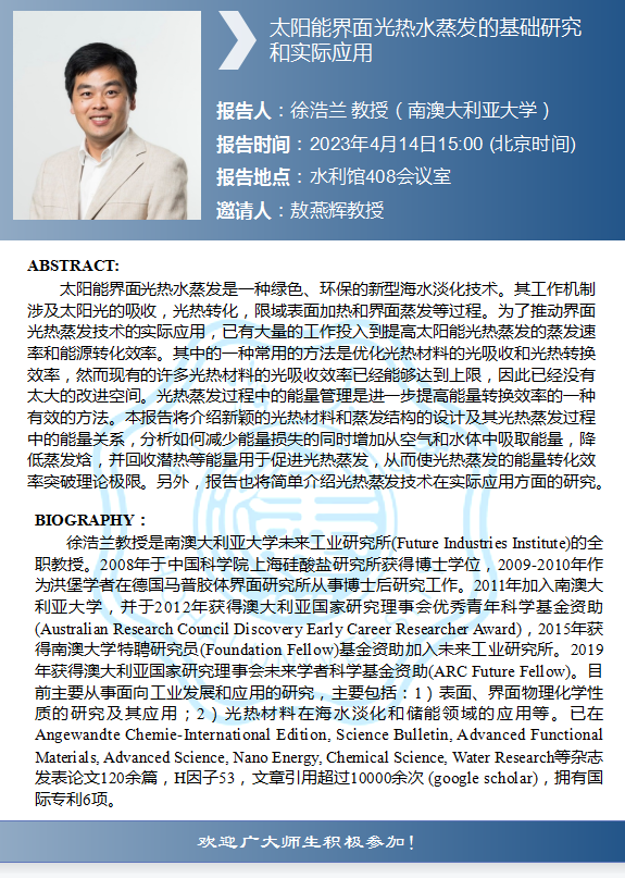 51吃瓜网 学术报告:太阳能界面光热水蒸发的基础研究和实际应用