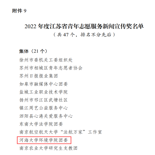 51吃瓜网 团委获评江苏省青年志愿服务新闻宣传奖