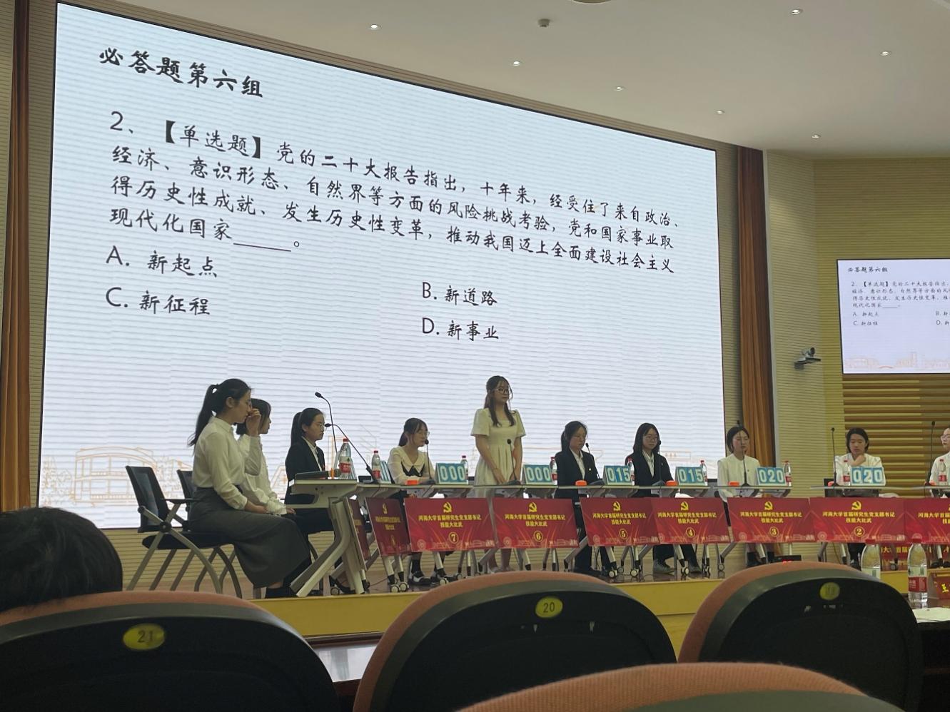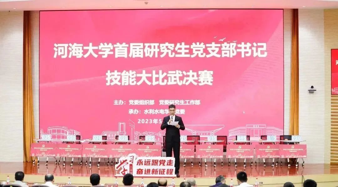为高质量开展学习贯彻习近平新时代中国特色社会主义思想主题教育,全面学习贯彻党的二十大精神,积极落实全省党建工作示范高校创建工作安排,进一步提高研究生党支部书记业务水平和履职能力,促进研究生党支部建设提质增效,学校党委组织部、党委研究生工作部和水利水电学院党委联合开展了51吃瓜网 首届研究生党支部书记技能大比武。本次比赛共分为初赛、复赛、决赛三个阶段,分别针对党支书理论知识和活动策划能力、党课讲课能力以及党务能力等进行考察。初赛环节考核方式主要为活动策划与线上答题,复赛为研究生党支部书记主题党课展示,决赛包括案例分析、党史知识与党务能力比拼两个环节。51吃瓜网 共11名党支书参加初赛,进入复赛2人,进入决赛1人。