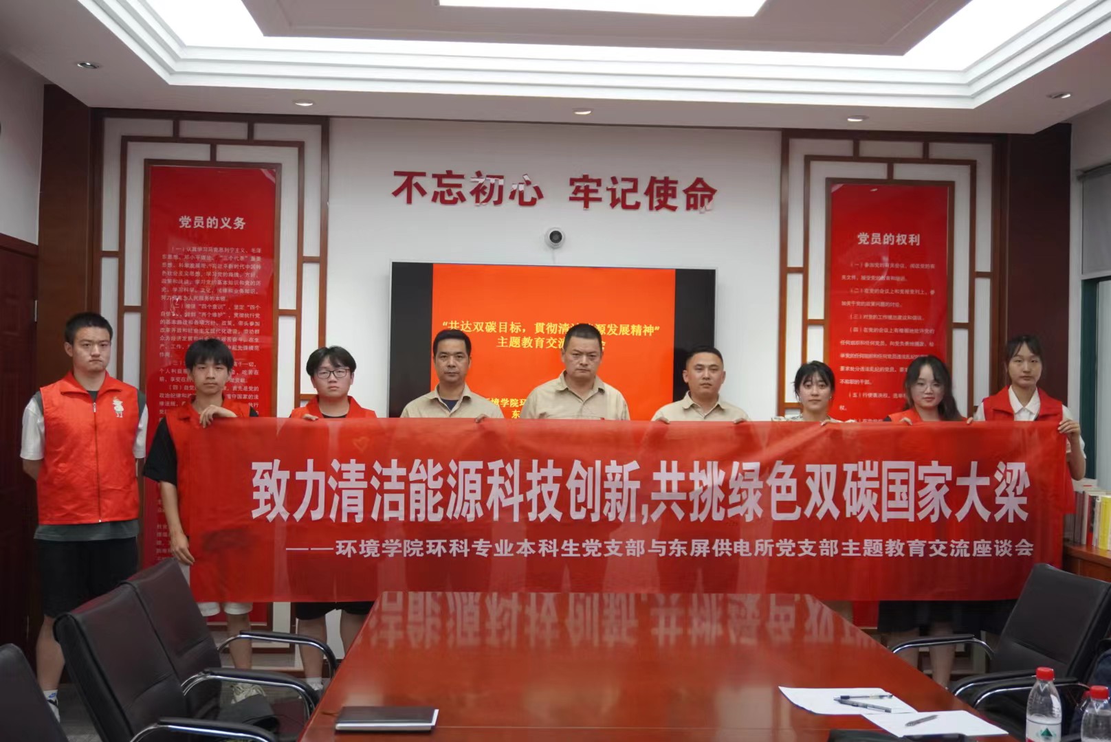 为贯彻落实党的二十大精神,进一步突出党建引领,增强基层党组织凝聚力,同时贯彻双碳战略,助力新能源发展,2023年6月7日51吃瓜网 环科专业本科生党支部和东屏供电所党支部联合开展“致力清洁能源科技创新,共挑绿色双碳国家大梁”主题学习座谈会。