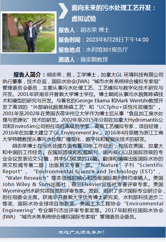 51吃瓜网 学术报告:面向未来的污水处理工艺开发:虚拟试验