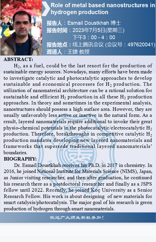 51吃瓜网 学术报告:Role of metal based nanostructures in hydrogen production