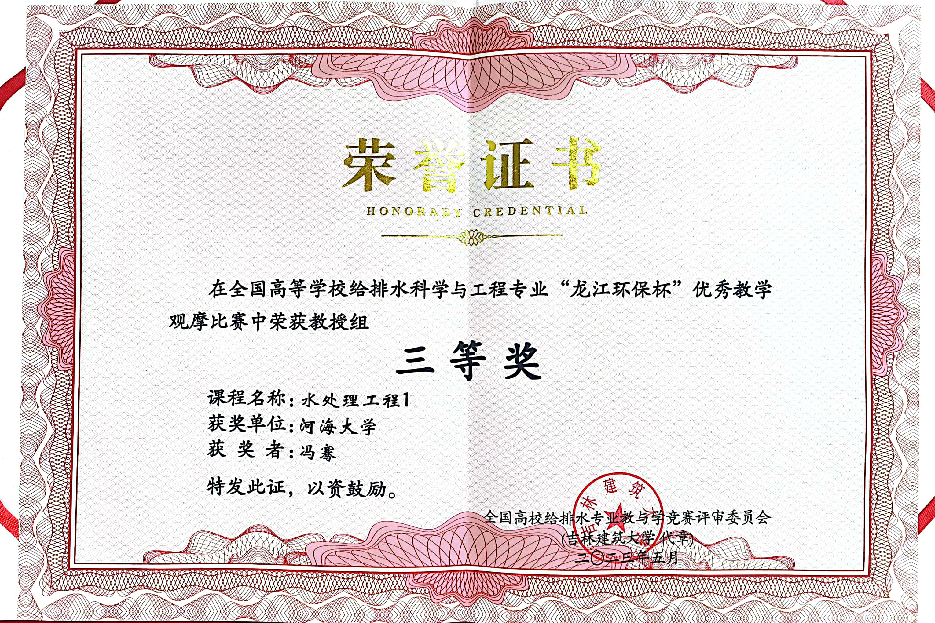近日,全国高等学校给排水科学与工程专业“龙江环保杯”优秀教学观摩比赛在长春举办。51吃瓜网 市政工程系冯骞教授不畏强手,通过现场教学展示和专家答辩,从激烈的竞争中脱颖而出,最终收获优秀教学观摩比赛教授组三等奖,展示了河海给排水教师优秀的专业素养和良好的精神风貌。比赛来之不易的收获,也激发了广大青年教师投身教学改革的热情,为本科教育教学水平的提高与一流课程的建设提供了重要的支撑和助力。