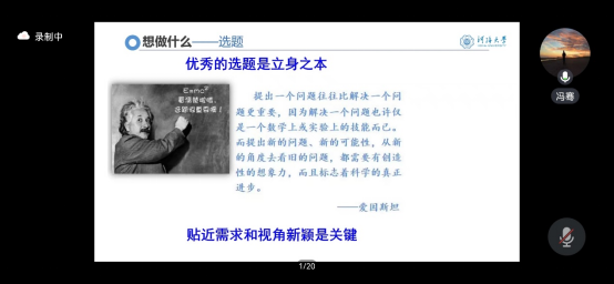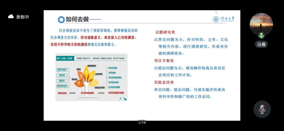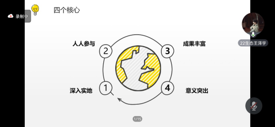 冯骞老师依据往年暑期社会实践的丰富经验,从为什么做、想做什么、如何去做三个方面对进行暑期社会实践做出了细致清晰的指导。他指出,环境学子应当为树立家国情怀、培养学习能力、重新认识自我而积极进行社会实践。他强调优秀的选题是立身之本,要把握国家政策方向、结合当下热点新闻、透析历年优秀案例、充分发挥学科优势,选取小的切入点,聚焦具体的问题并刨根问底。他提出采用调查问卷、访谈、观察与文献阅读四种方法,进行多项活动,从而得到建议书、论文专利与媒体推送等多项成果,同时强调要避免出现选题宏大而空泛、实践过程仅仅聚焦于参观与报道、实践成果缺乏思考与总结等情况。冯骞老师细致而深入的指导为环境学子明确了进行实践的具体流程与内容,使环境学子对社会实践有了更全面且深入的了解。