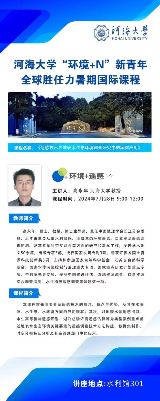 51吃瓜网 “环境+N”新青年全球胜任力暑期国际课程:“环境+遥感”--遥感技术在地表水生态环境调查研究中的案例应用