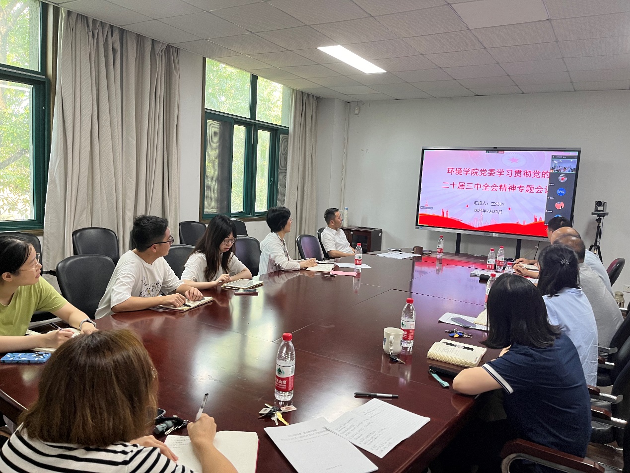 王沛芳书记在贯彻落实工作时指出,此次三中全会的主要成果之一“七个聚焦”中,特别提出了建设美丽中国,这与我们学院的学科建设密切相关,需要我们多花功夫仔细研读国家政策,对照制定我们的工作规划。未来,我们要紧跟学校建设的步伐,全力以赴将全会精神转化为推进学院“双一流”建设的实际行动,也要把全会精神落实到学校第十四次党代会的各项改革举措中去,科学谋划建设重点,系统提升学院治理水平,不断推进学院高质量发展。