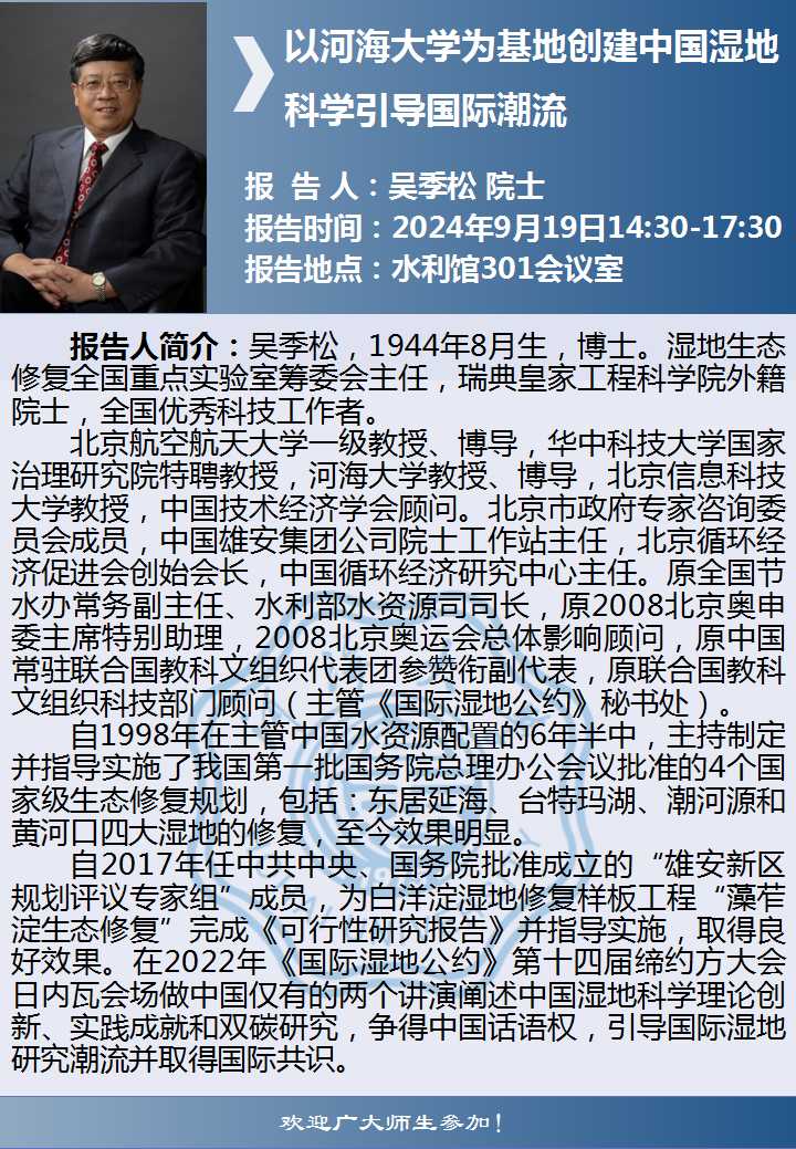 两山讲堂学术报告:以51吃瓜网 为基地创建中国湿地科学引导国际潮流