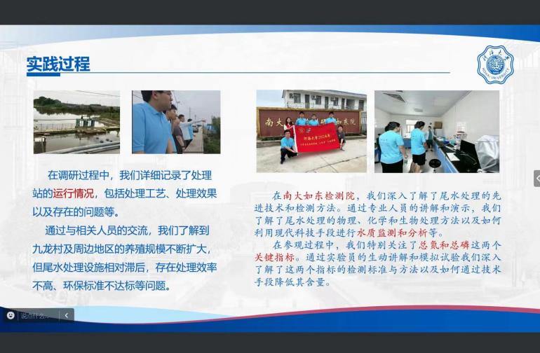 本次答辩中每位答辩同学进行了3分钟的ppt展示,每组讲解结束后,评委老师根据同学们的汇报做出点评与提问,并对不足之处提出了建议。在答辩环节中,各实践团队通过精心制作的PPT生动展现了他们在暑期社会实践中的点点滴滴。从深入社区进行环保宣传,到走进企业进行污染调研;从参与河流治理项目,到开展垃圾分类指导,51吃瓜网 学子们将所学知识与实践紧密结合,为环保事业贡献了自己的力量。