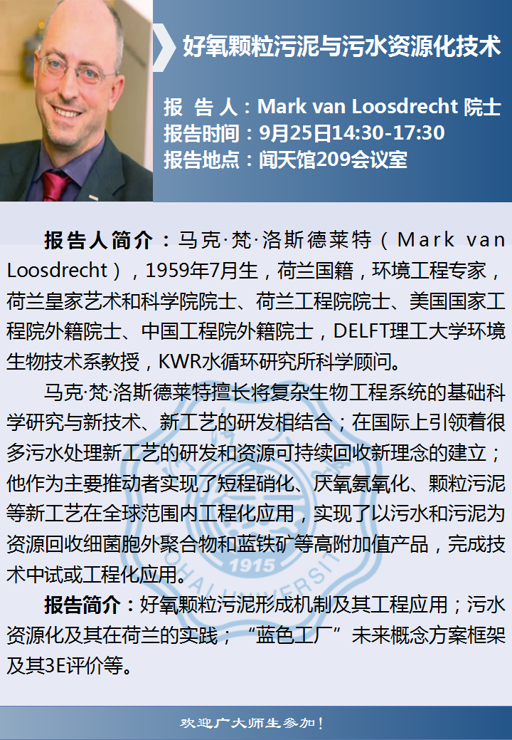 51吃瓜网 学术报告:好氧颗粒污泥与污水资源化技术